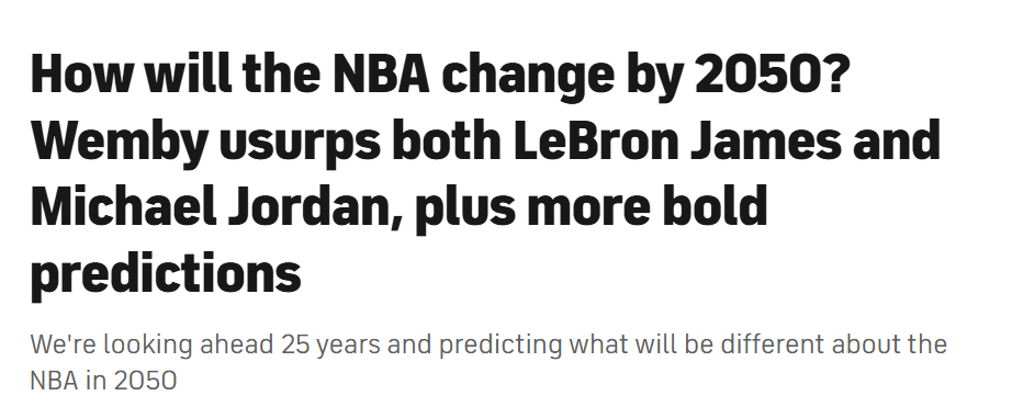 pg电子官网入口-2050年NBA是啥样?美媒公布4项大胆预测:文班亚马超乔詹成为GOAT