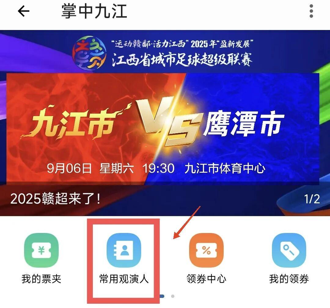 9月1日上午10时率先开启单数观赛区(如 A1、A3、A5……)售票,9月2日上午10时再开放双数观赛区(如 A2、A4、A6……)。为便于市民高效选购,可提前在“掌中九江app—赣超票务”板块录入购票身份信息,做好准备,以便开票后快速申购球赛门票。