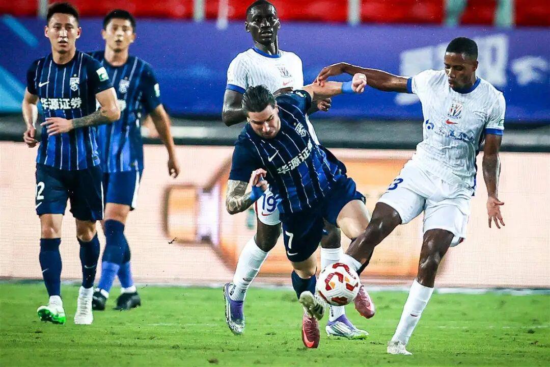 比赛开始后,在失去了“熟悉”的对手后,上海申花队逐渐找不到北。尽管上半场开局曾有一粒进球,但上海申花队前锋阿苏埃手球在先,进球无效。阿苏埃消失了,特谢拉消失了,刘诚宇也消失了……上海申花的攻击群整体迷失方向。于是,在顶住对手上半场的进攻后,武汉三镇队如愿带着0比0的平局进入下半场。